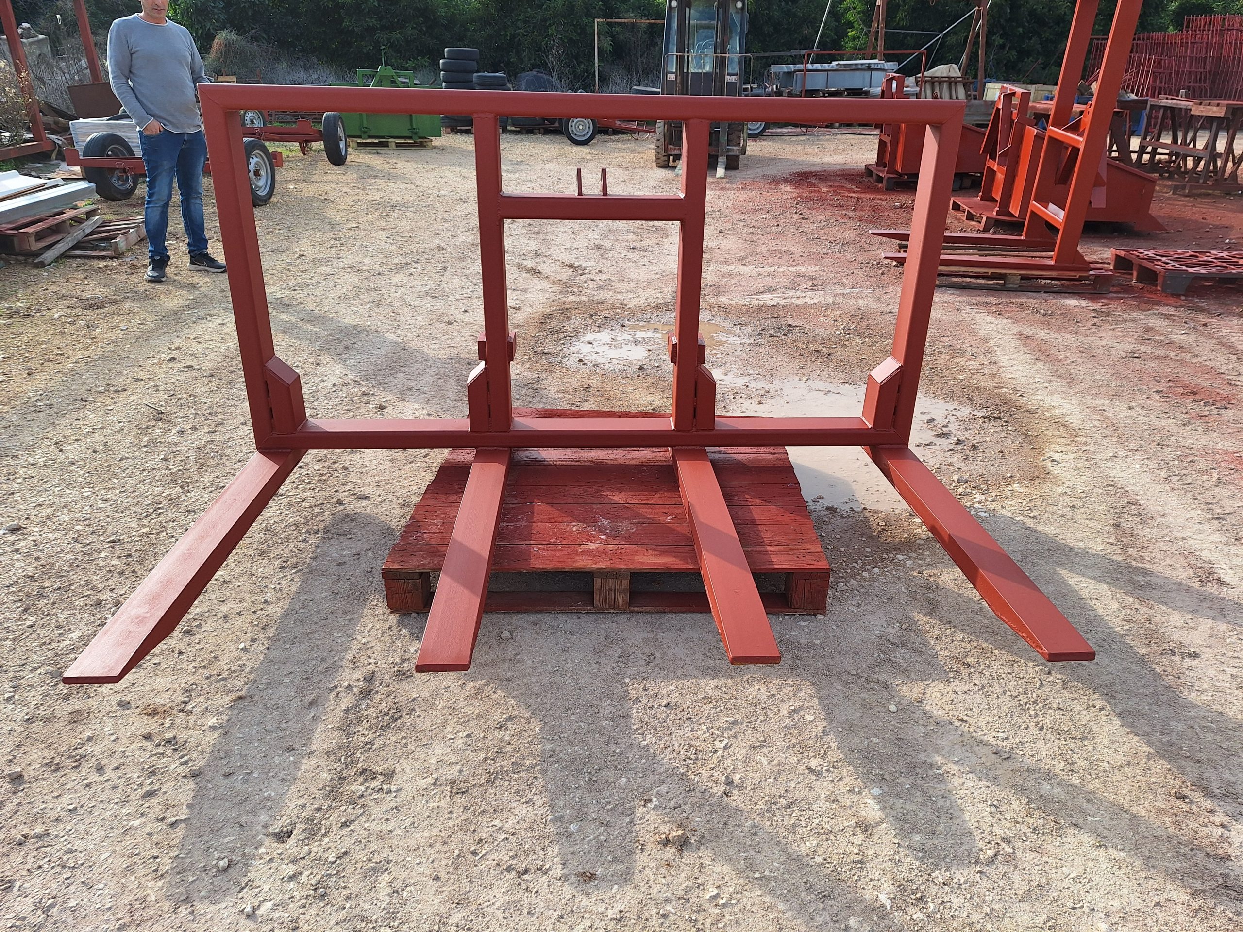 באמצעות המזלג הכפול ניתן להרים שני מיכלי פרי ביחד כאשר הם עומדים אחד על יד השני.